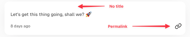 This was my mental model when I started digging in. Let's get the first point right out of the way: it's impossible to have no title in posts in Ghost. I knew that and I also knew how I'd want to address it: